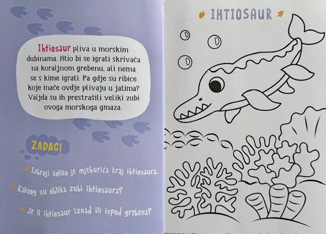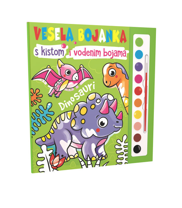 Bojanka s kistom i vodenim bojama oduševit će najmlađe umjetnike! Prizore s dinosaurima djeca mogu obojiti u deset veselih boja – dovoljno je samo malo vode i šarena zabava može početi!   UPOZORENJE: Proizvod sadrži sitne dijelove, preporučuje se korištenje uz nadzor odrasle osobe.