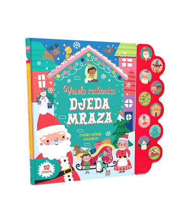 Uz glasnu pjesmu i veselje Djed Mraz ispunjava dječje želje!   UPOZORENJE: Ova slikovnica sadrži baterije i elektroniku. U njima su tvari koje mogu naštetiti okolišu. Ne bacajte ih s ostalim kućnim otpadom, nego ih odložite na za to predviđenim mjestima. Baterije su malene i opasne za dječje rukovanje. Dijete se ne bi smjelo koristiti ovim proizvodom ako spremnik za baterije nije propisno osiguran. Preporučuje se korištenje uz nadzor odrasle osobe.