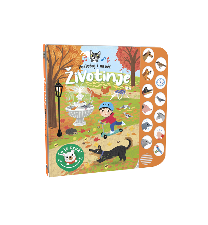 Poslušaj i nauči kako nešto ovdje zvuči!   Veseli stihovi i lijepe ilustracije u ovoj slikovnici sa zvukovima raznih životinja oduševit će najmlađe.,   UPOZORENJE: Ova slikovnica sadrži baterije i elektroniku. U njima su tvari koje mogu naštetiti okolišu. Ne bacajte ih s ostalim kućnim otpadom, nego ih odložite na za to predviđenim mjestima. Baterije su malene i opasne za dječje rukovanje. Dijete se ne bi smjelo koristiti ovim proizvodom ako spremnik za baterije nije propisno osiguran. Preporučuje se korištenje uz nadzor odrasle osobe.